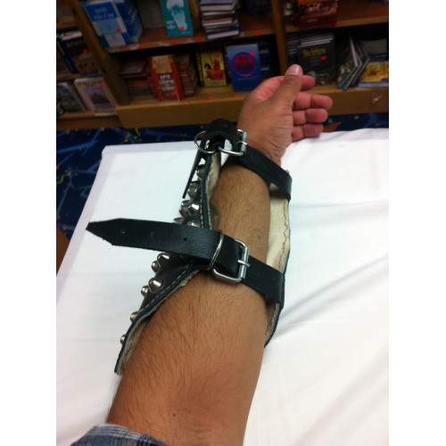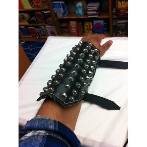 This "Baaju Band" (arm strap) is made of a leather type of material with very blunt metal spikes on it.