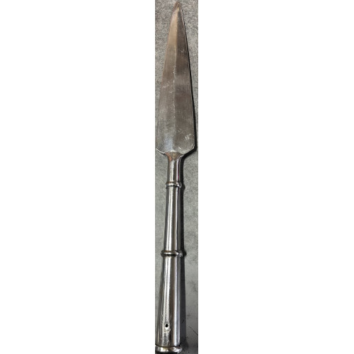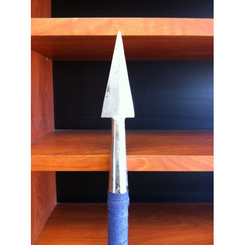 This Barscha is 5FT10" x 2'' (LxW). The metallic spear at the top is 10''. It weighs about 3lbs.