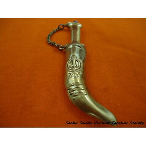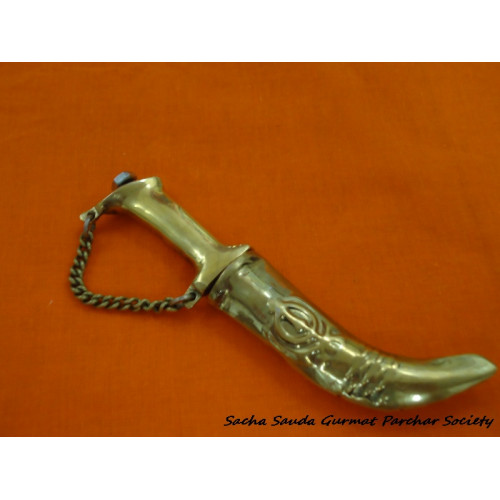 KIRPAN - 5 inch Brass Artistic Kirpan with Chain Handle